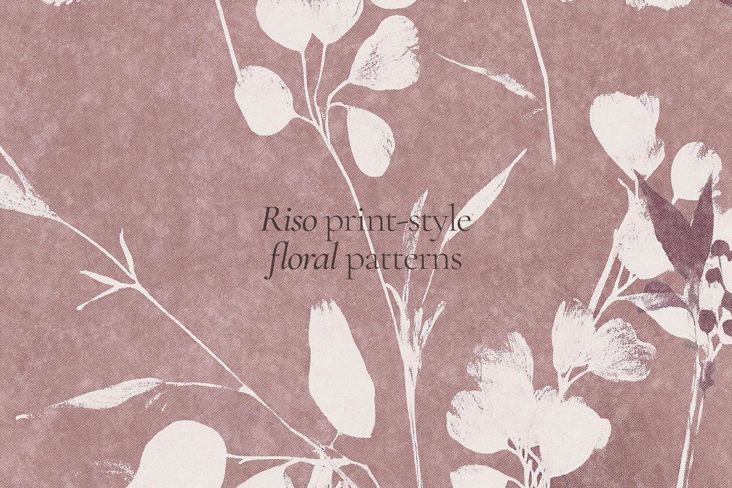 This is a beautiful collection of 20 seamless floral patterns in a riso print-inspired style, along with 6 seamless floral patterns with transparent backgrounds.
