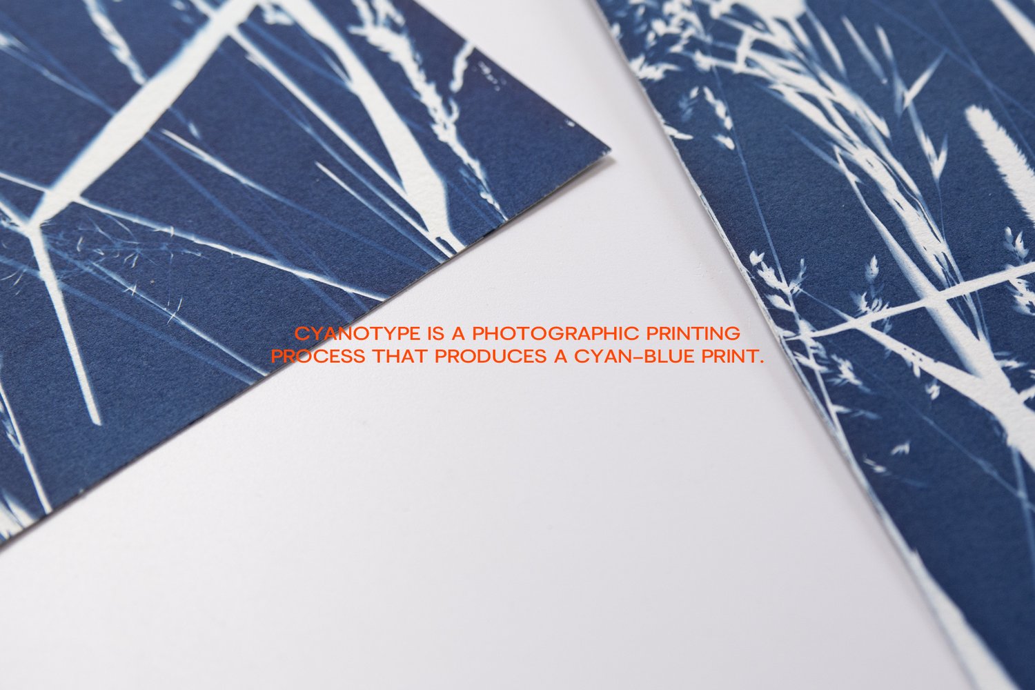 Cyanotype is a photographic printing process that produces a cyan-blue print.