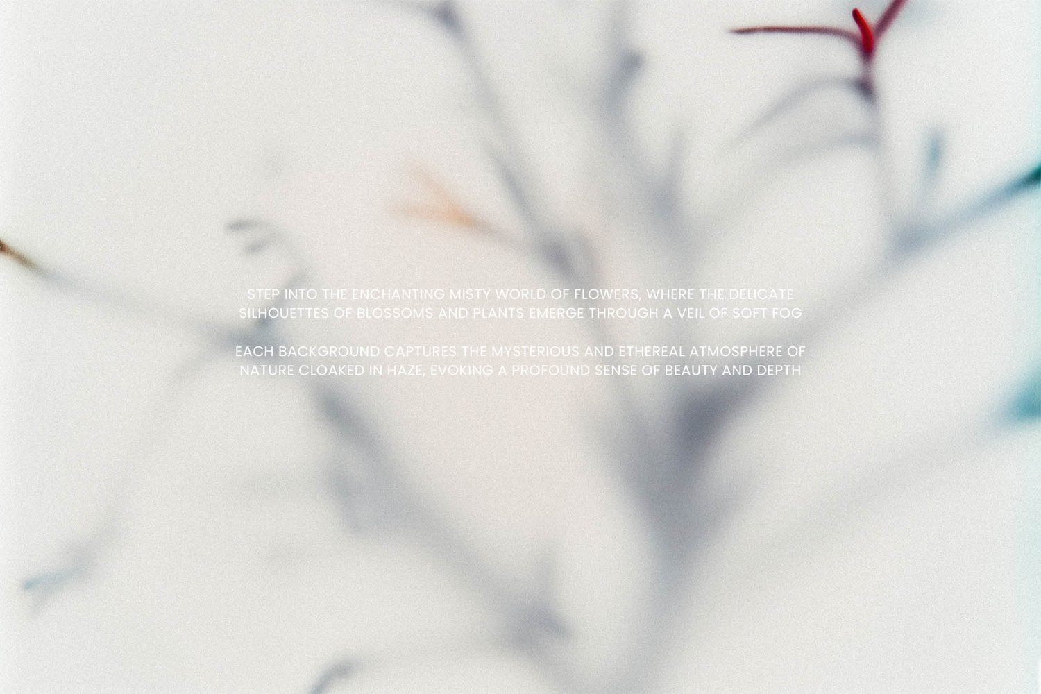 The Foggy Flower Collection includes 25 beautiful floral backgrounds, each surrounded by soft, mystical fog.