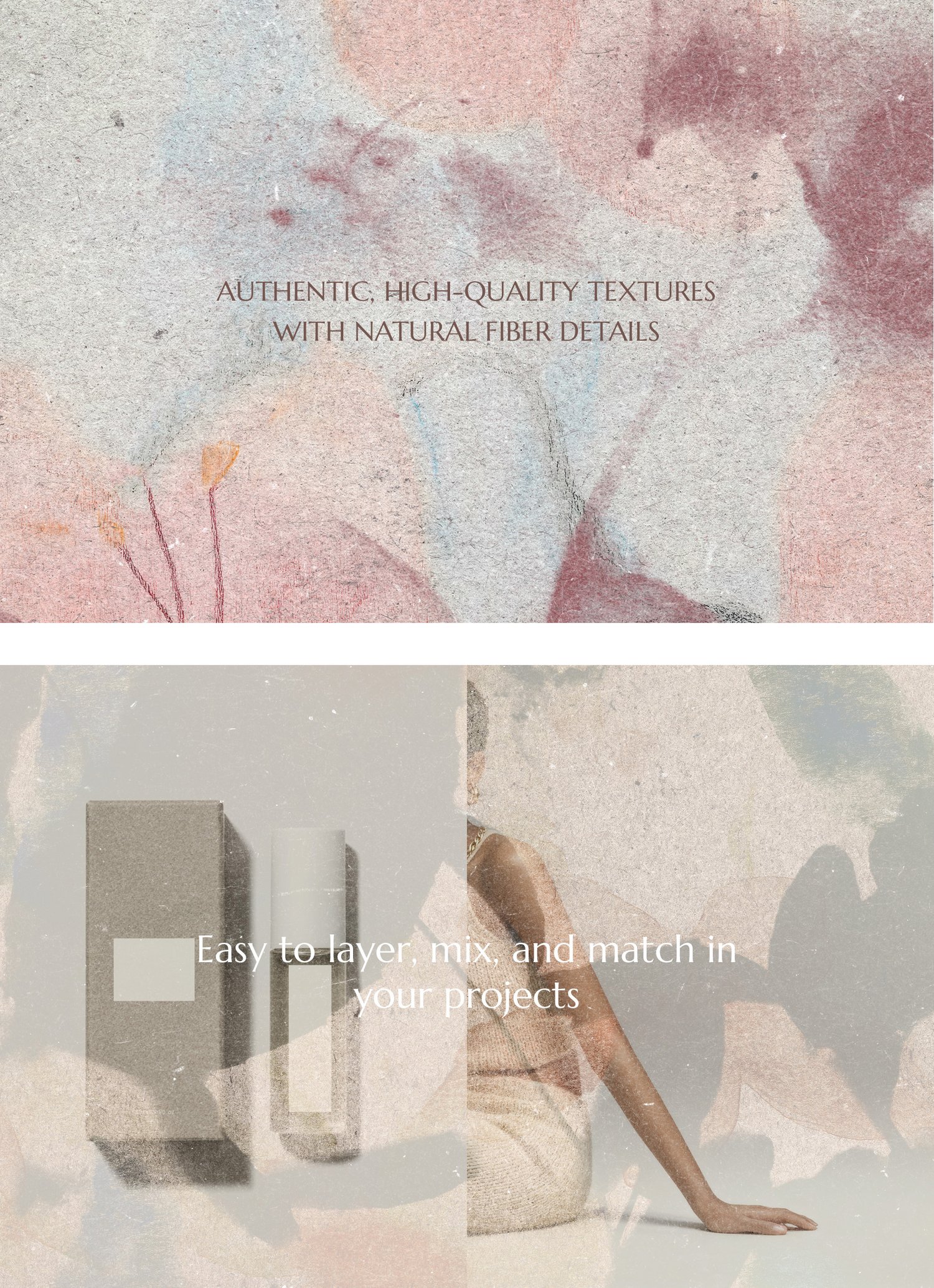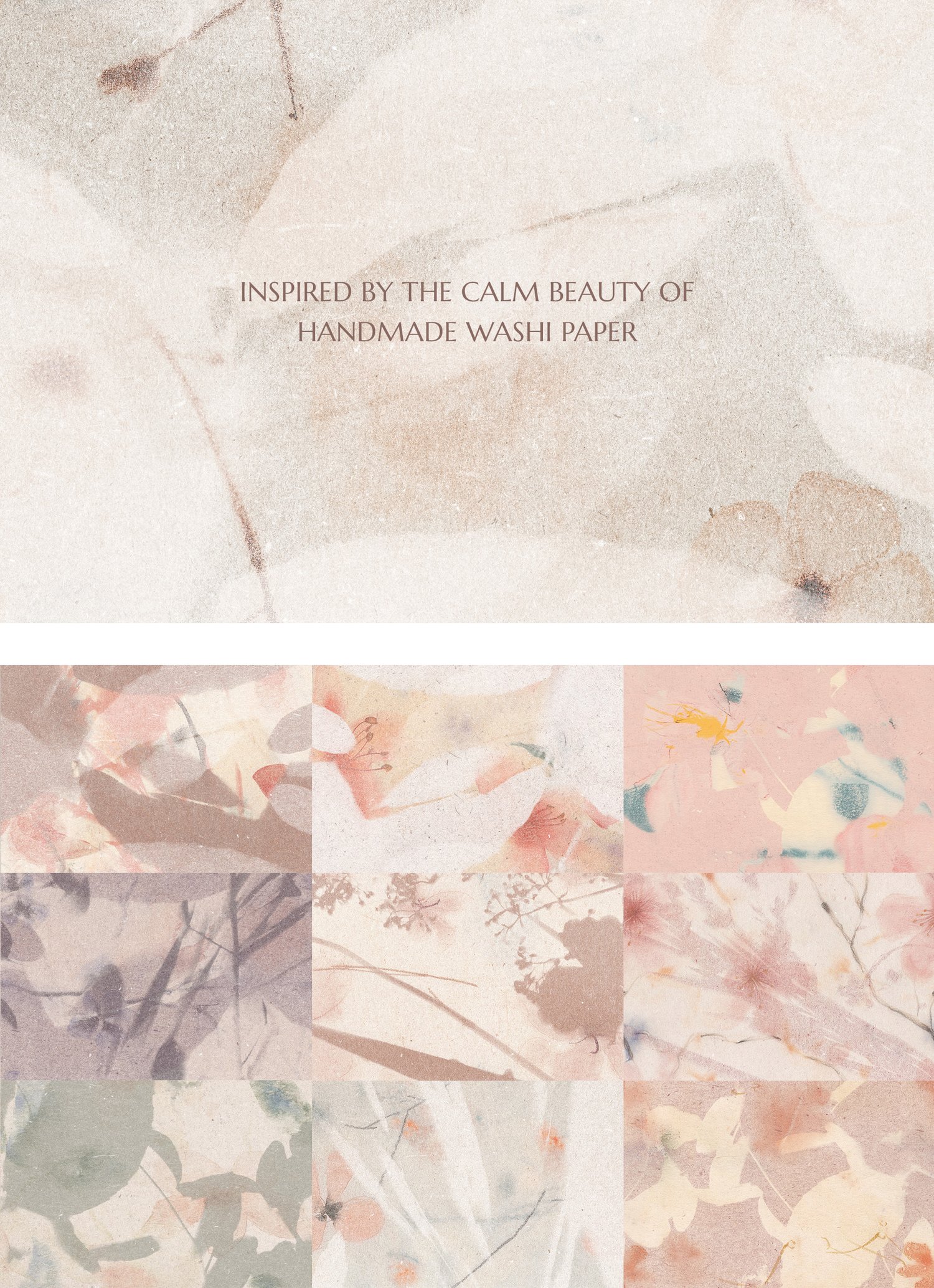 Showcases 25 handcrafted floral paper textures and 25 transparent overlays inspired by the serene beauty of Japanese handmade paper.