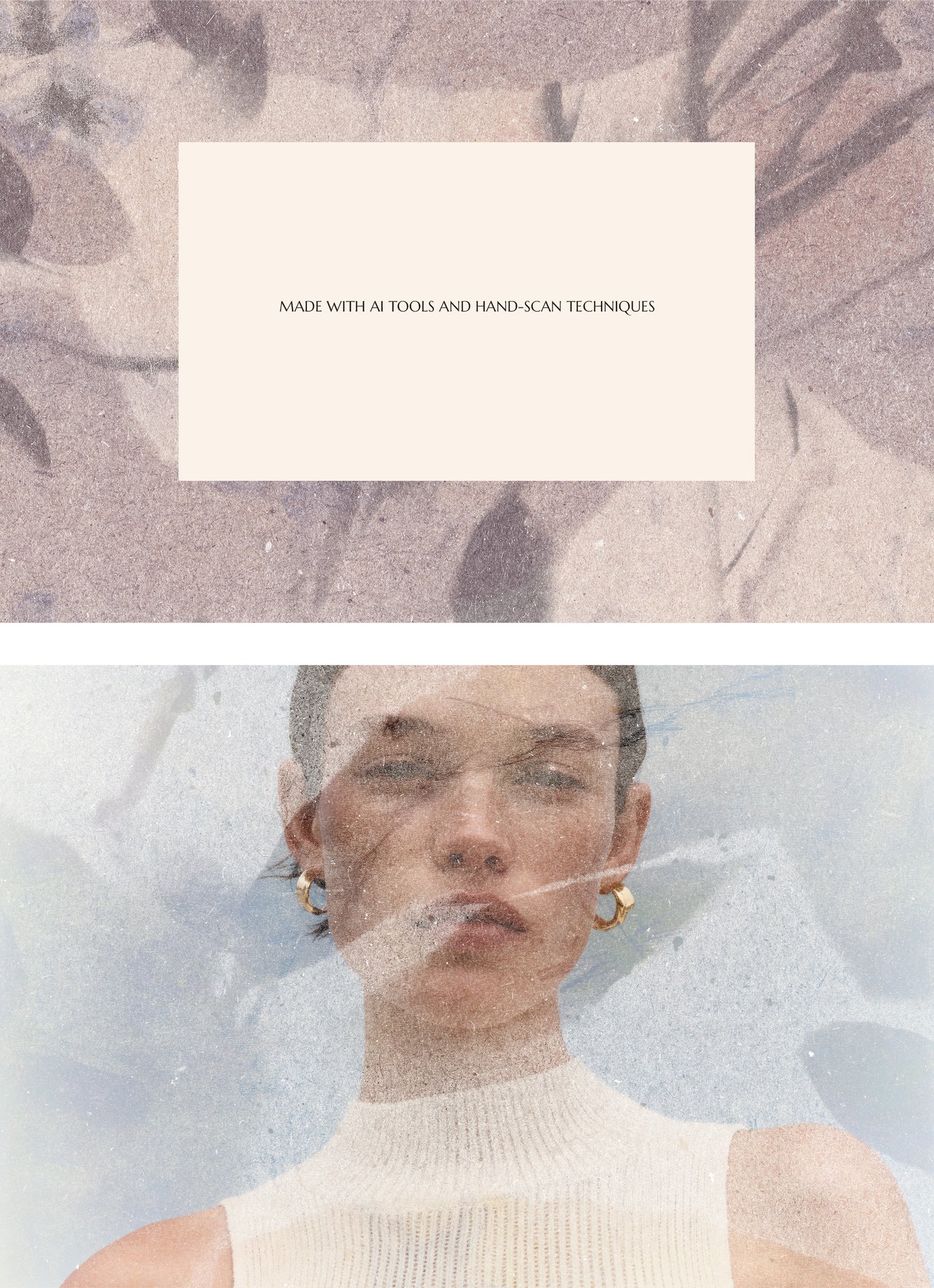 The collection was created using AI tools and hand-scan techniques of organic elements, allowing for an authentic and high-quality visual result.