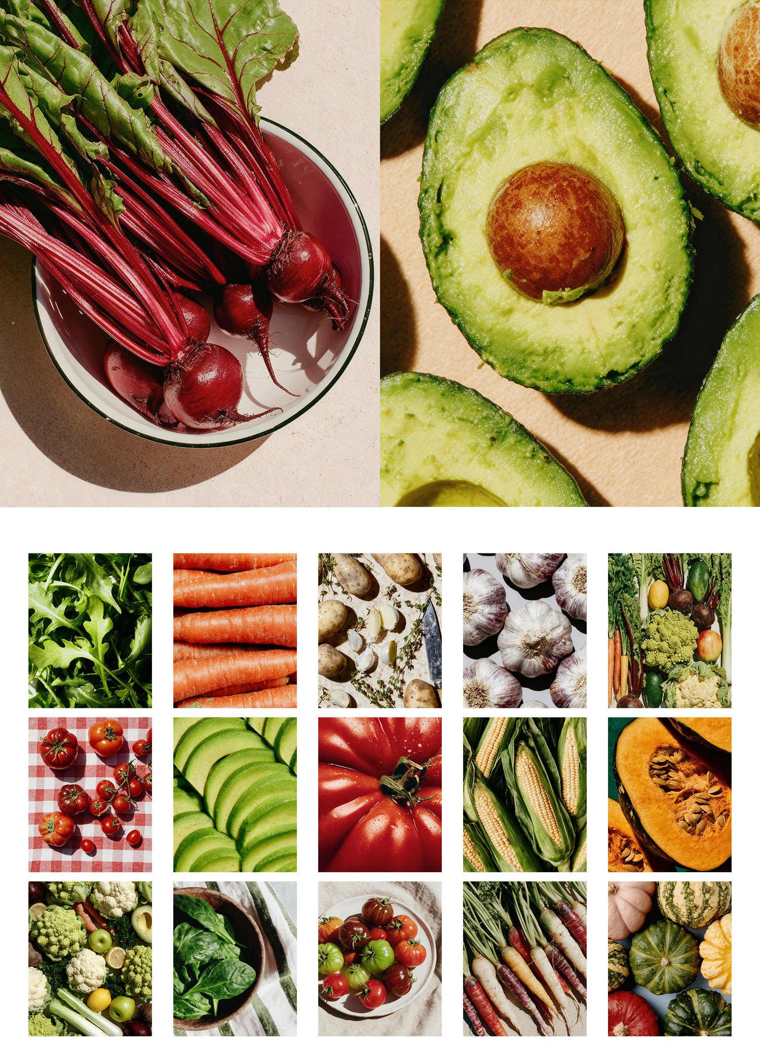 The Vegetable Image Collection features 45 vibrant, minimal images inspired by the natural beauty of vegetables — their shapes, textures, and colors.