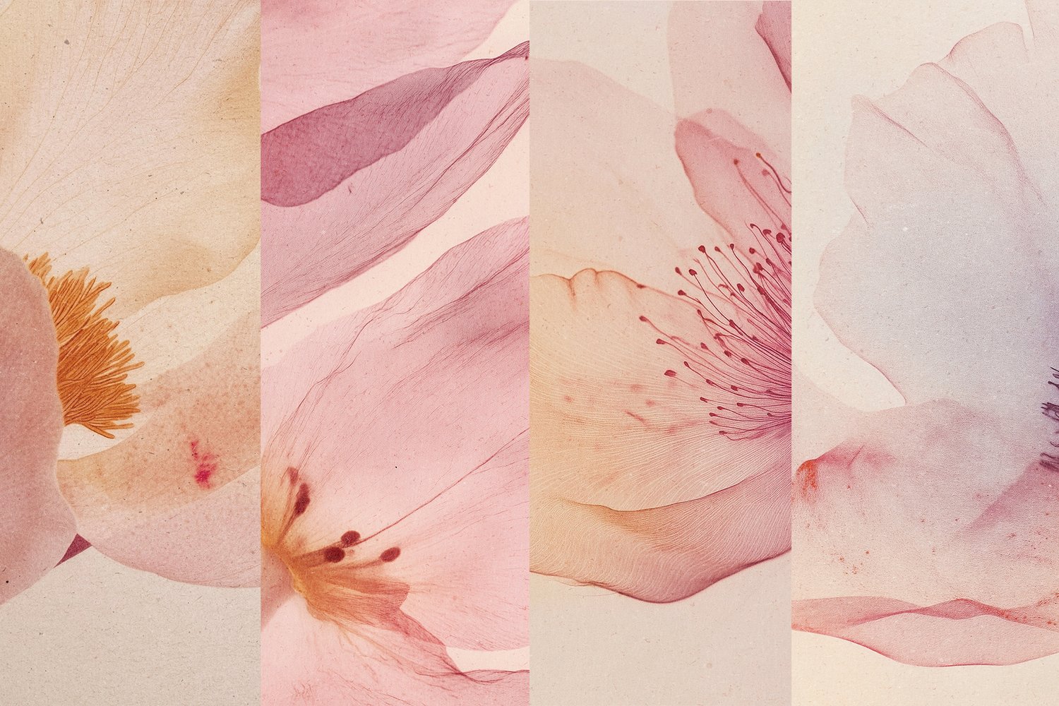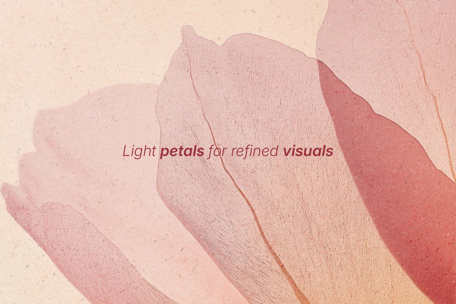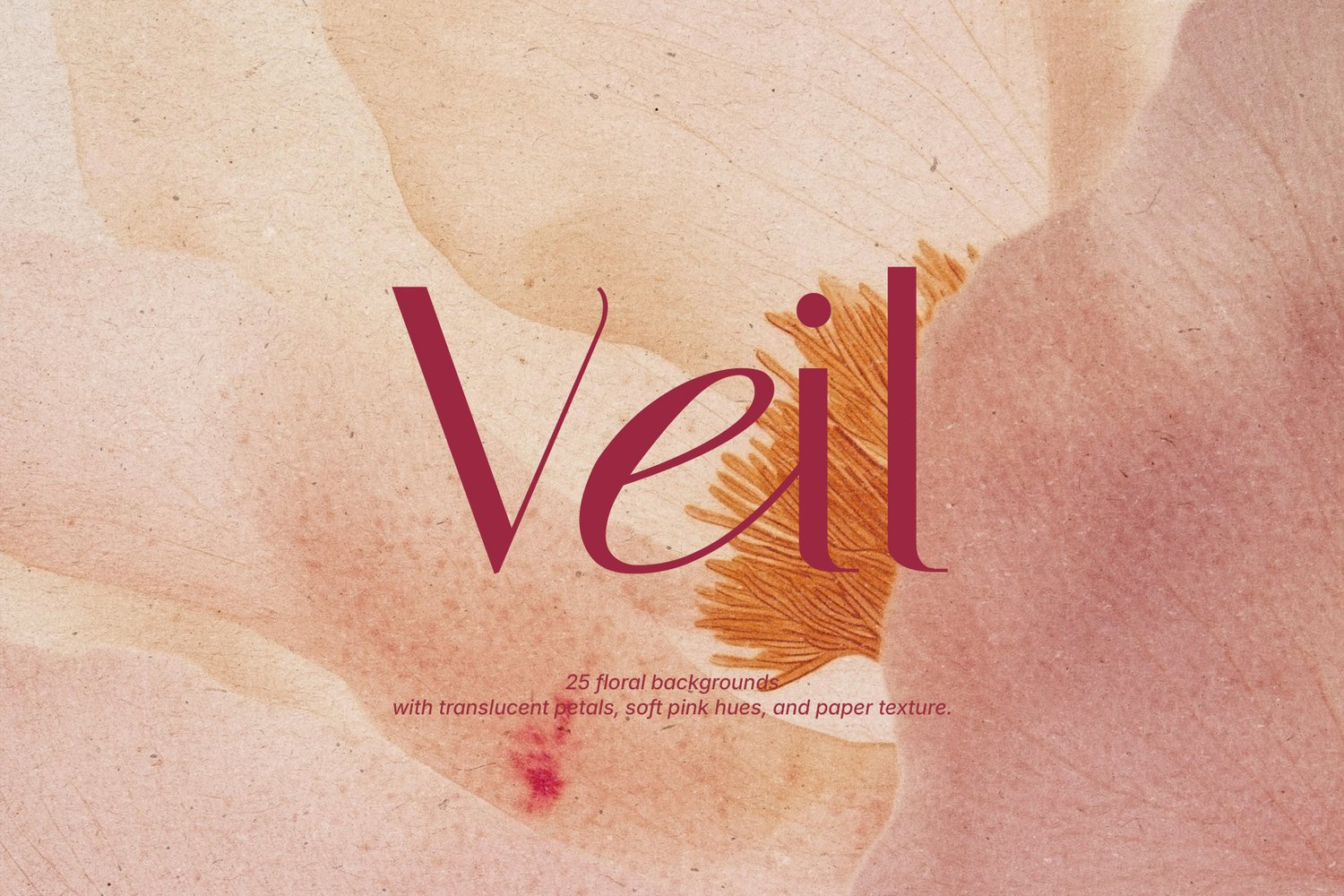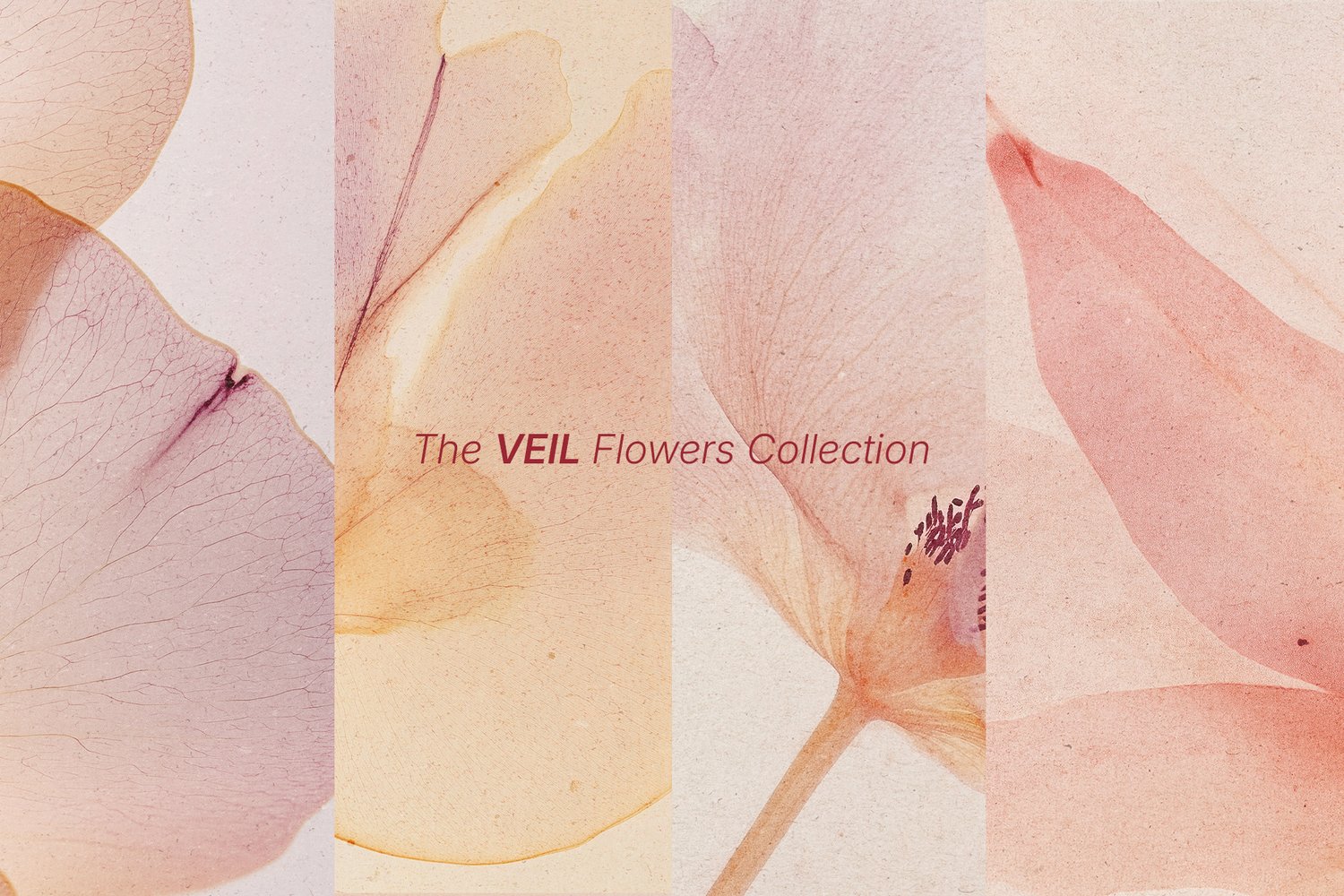 The VEIL Flowers Collection includes 25 delicate floral backgrounds with soft, translucent petals and subtle paper textures. These airy visuals evoke calm, elegance, and natural beauty.